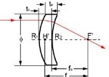 Plano-convex | BK7, UVSF, CaF2, MgF2, Silicon, Ge, ZnSe, ZnS | | Positive focus length. Most suitable where one conjugate is more than five times the other, e.g. in sensor application or for use with near collimated light. | |
